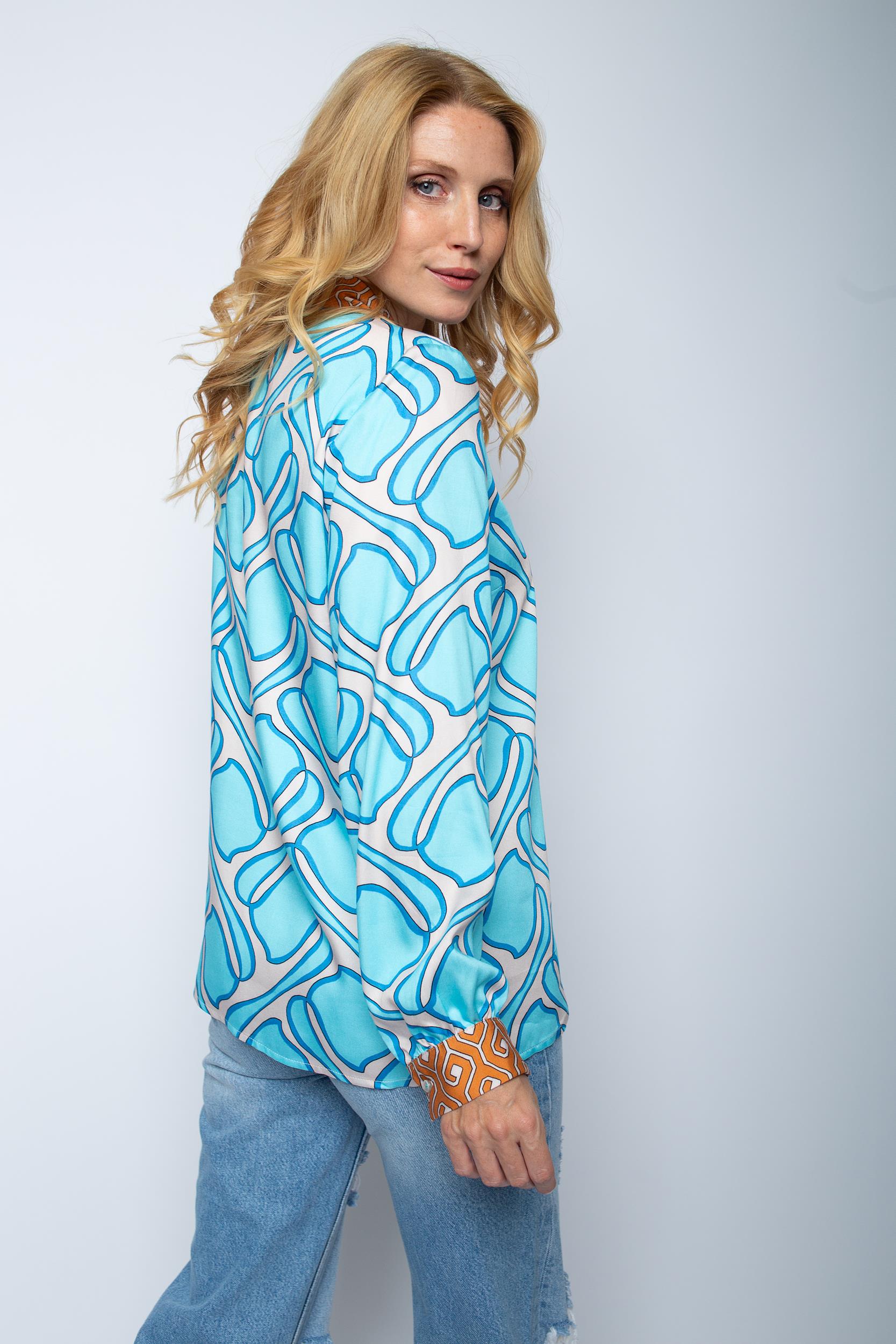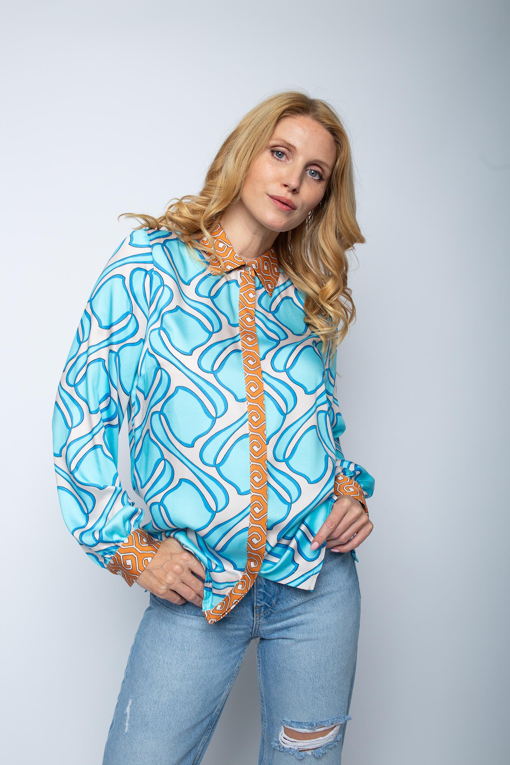 Emily van den Bergh – Hemdbluse mit Retro-Bordüren in Blau