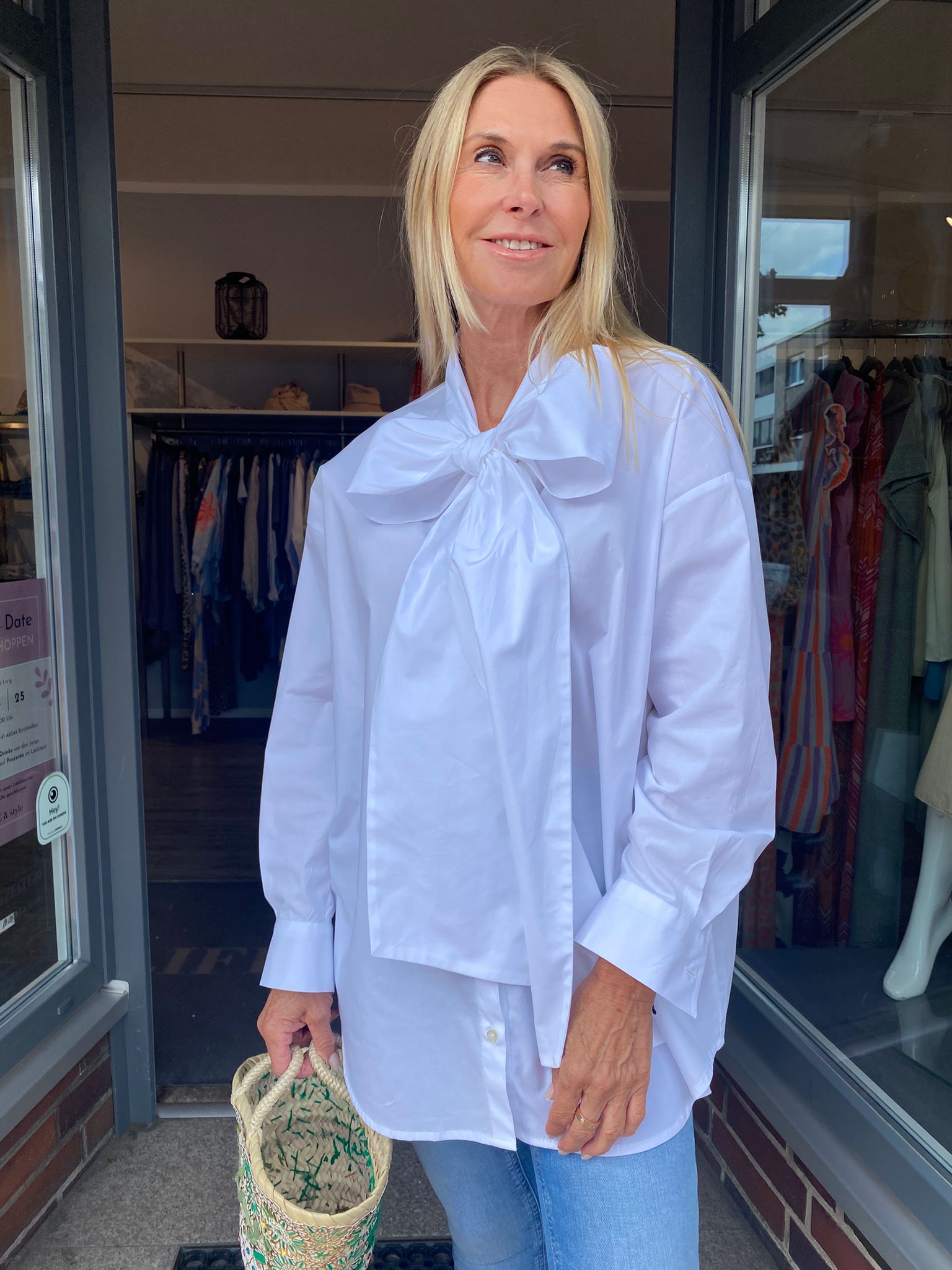 Emily van den Bergh – Oversize Bluse mit XXL Schluppe in Weiß