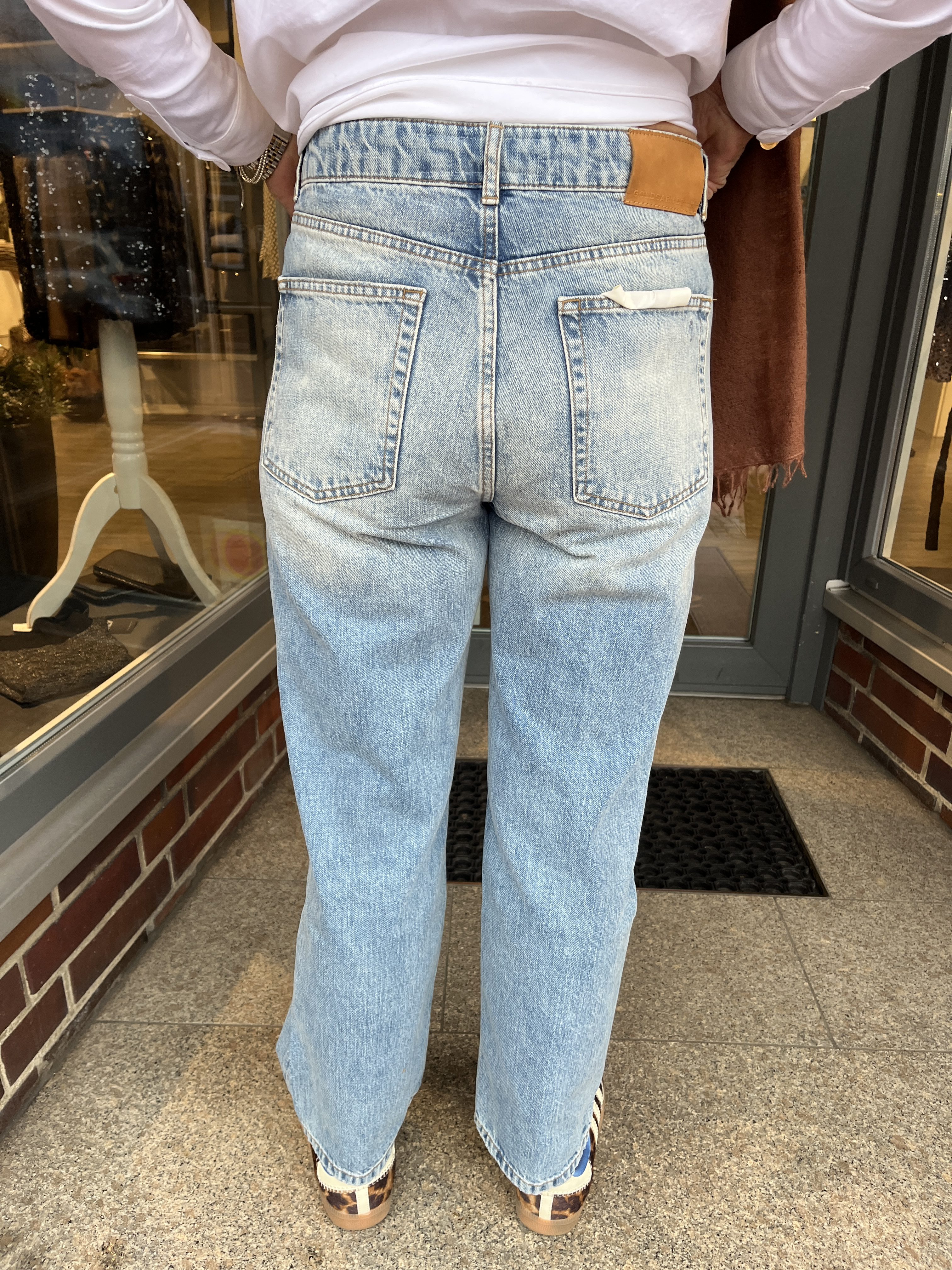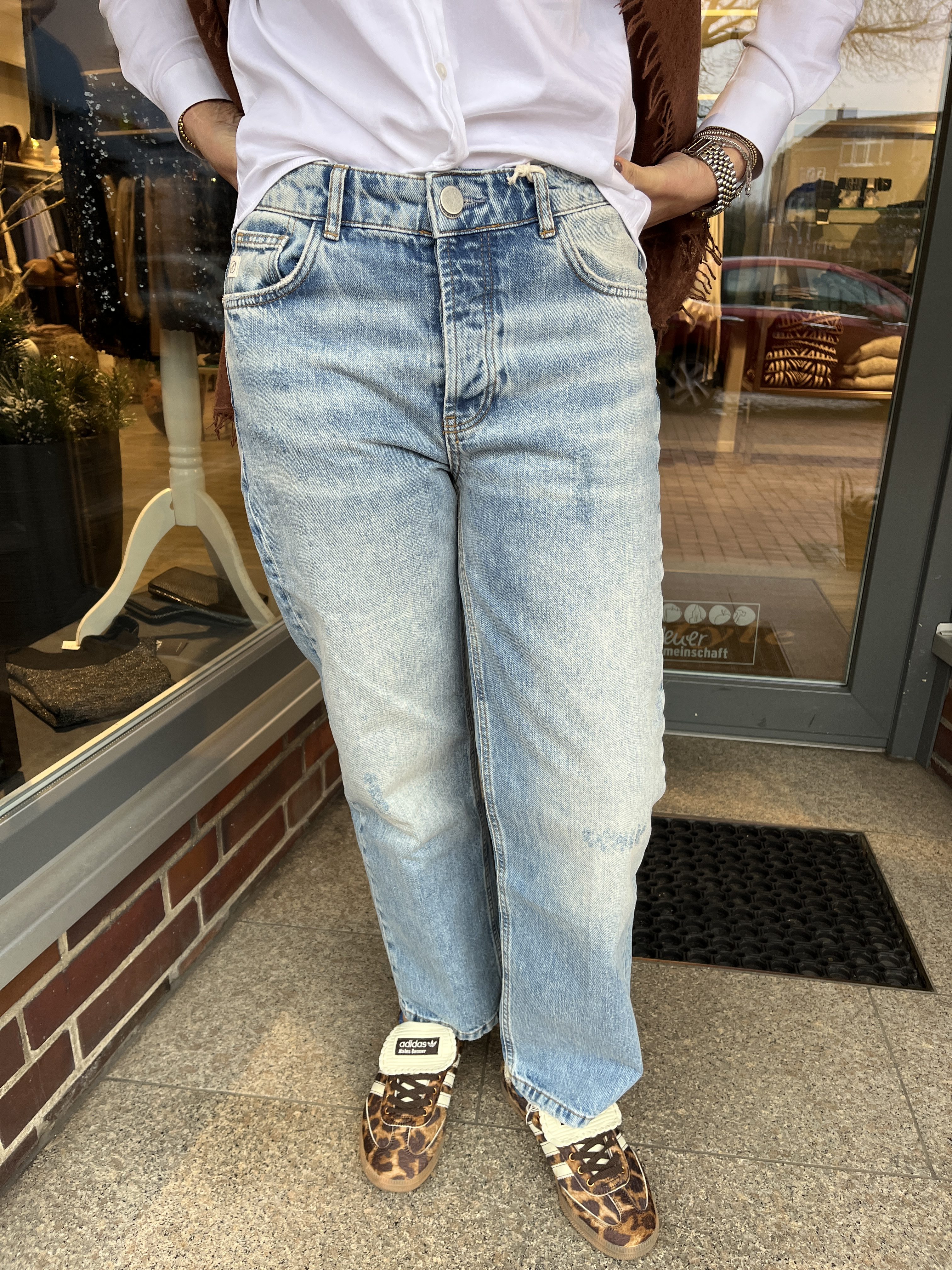 Die Denim-Jeans besteht aus 100% Baumwolle.