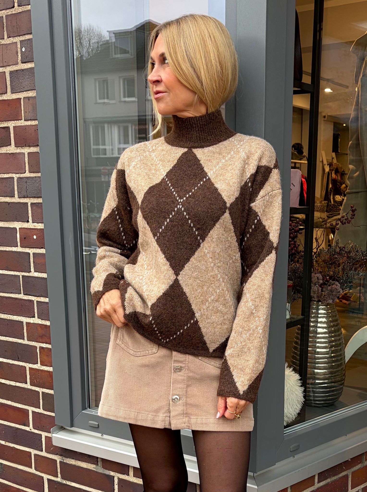 Rautenstrickpullover Braun Beige