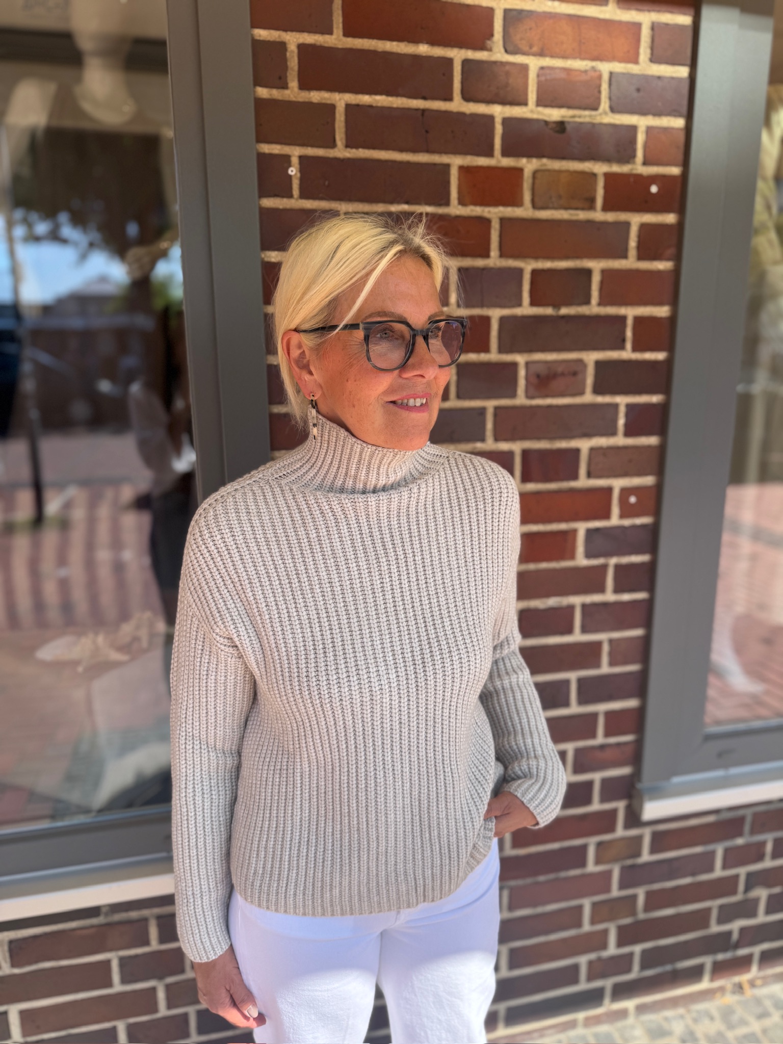 Kurzer Rollkragenpullover in Beige