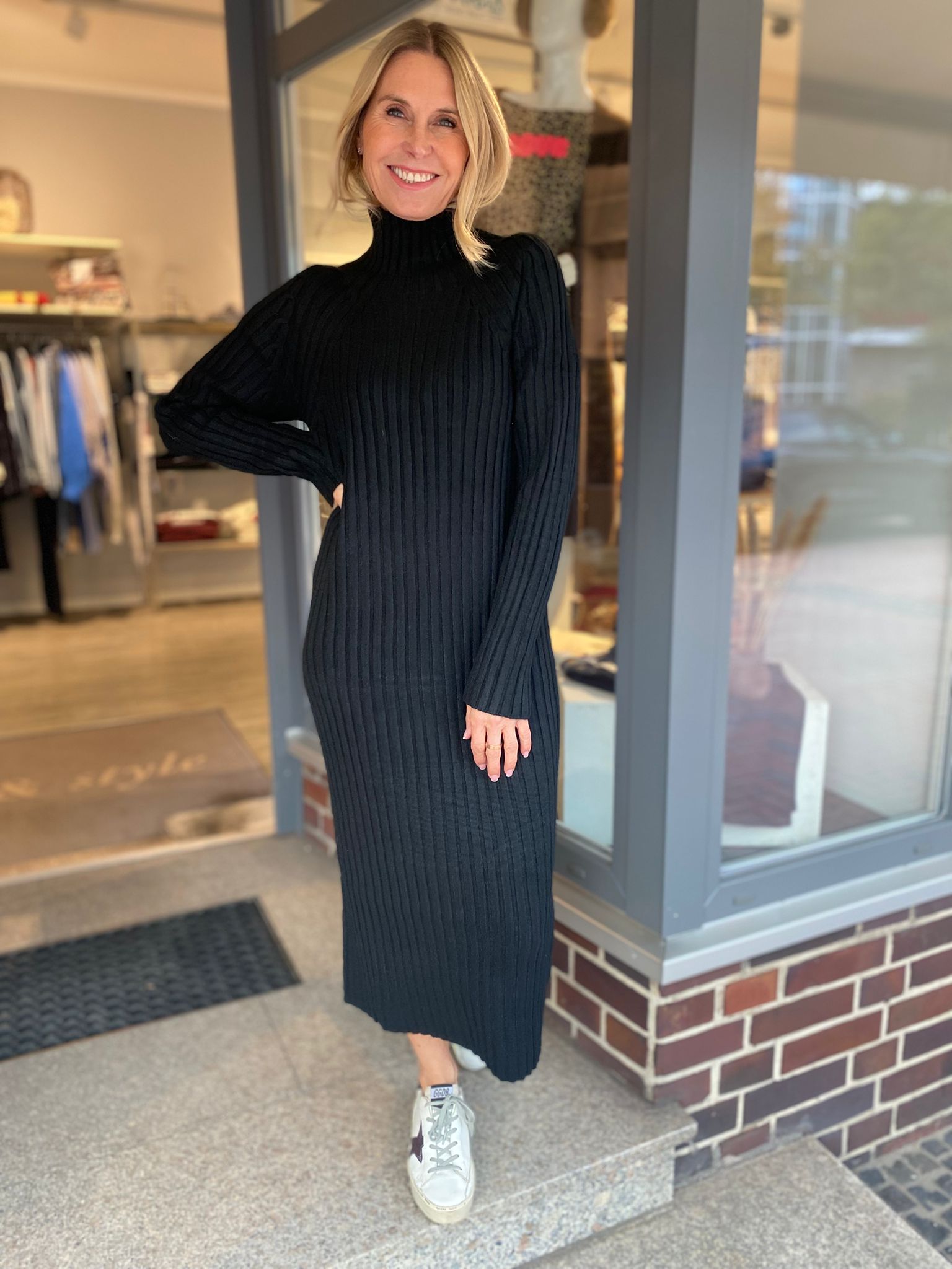 Schreibe die erste Rezension für „Maxistrickkleid mit Rollkragen in Schwarz“