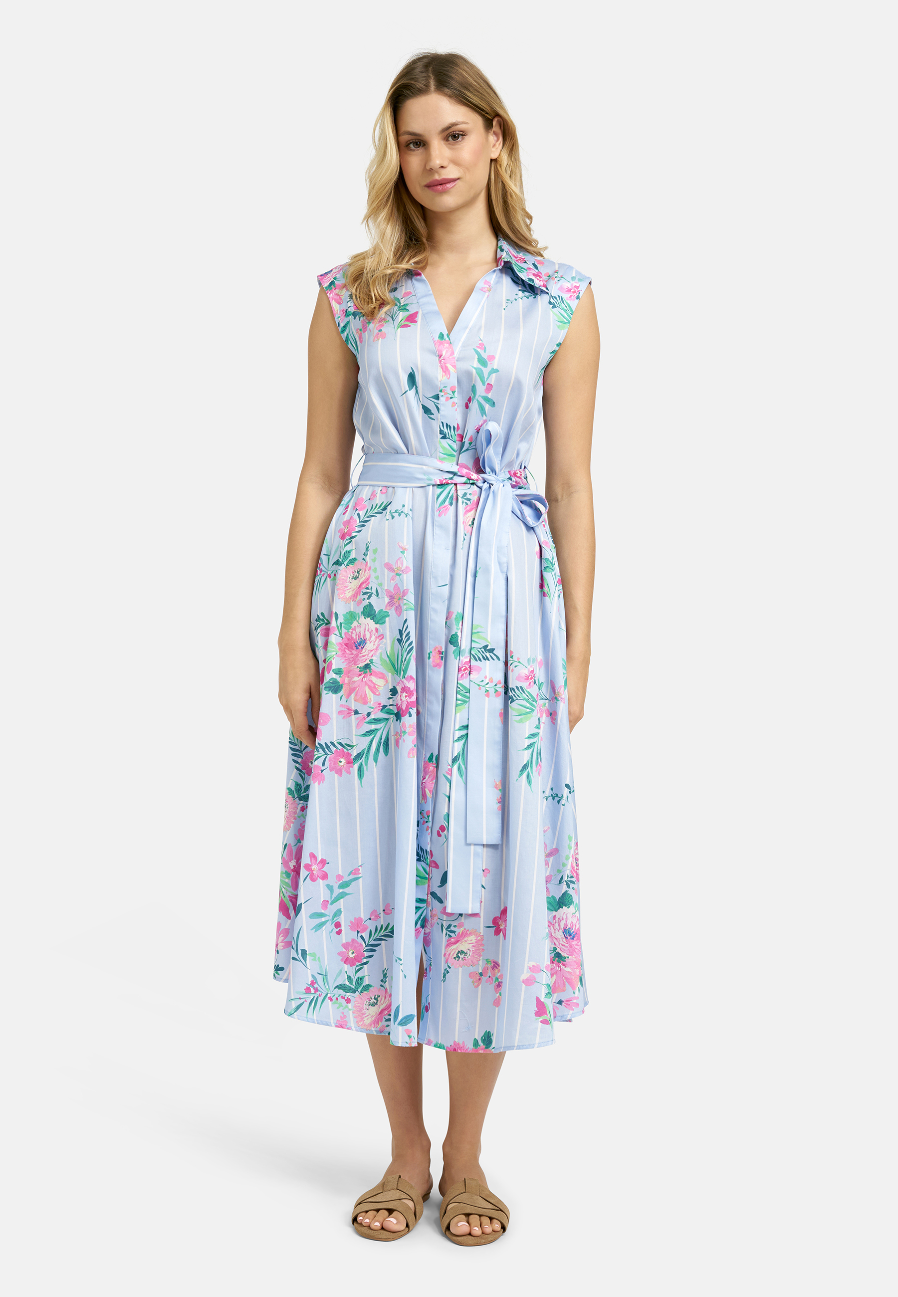 Milano Italy – Ärmelloses Midikleid mit Gürtel aus Muschelstoff