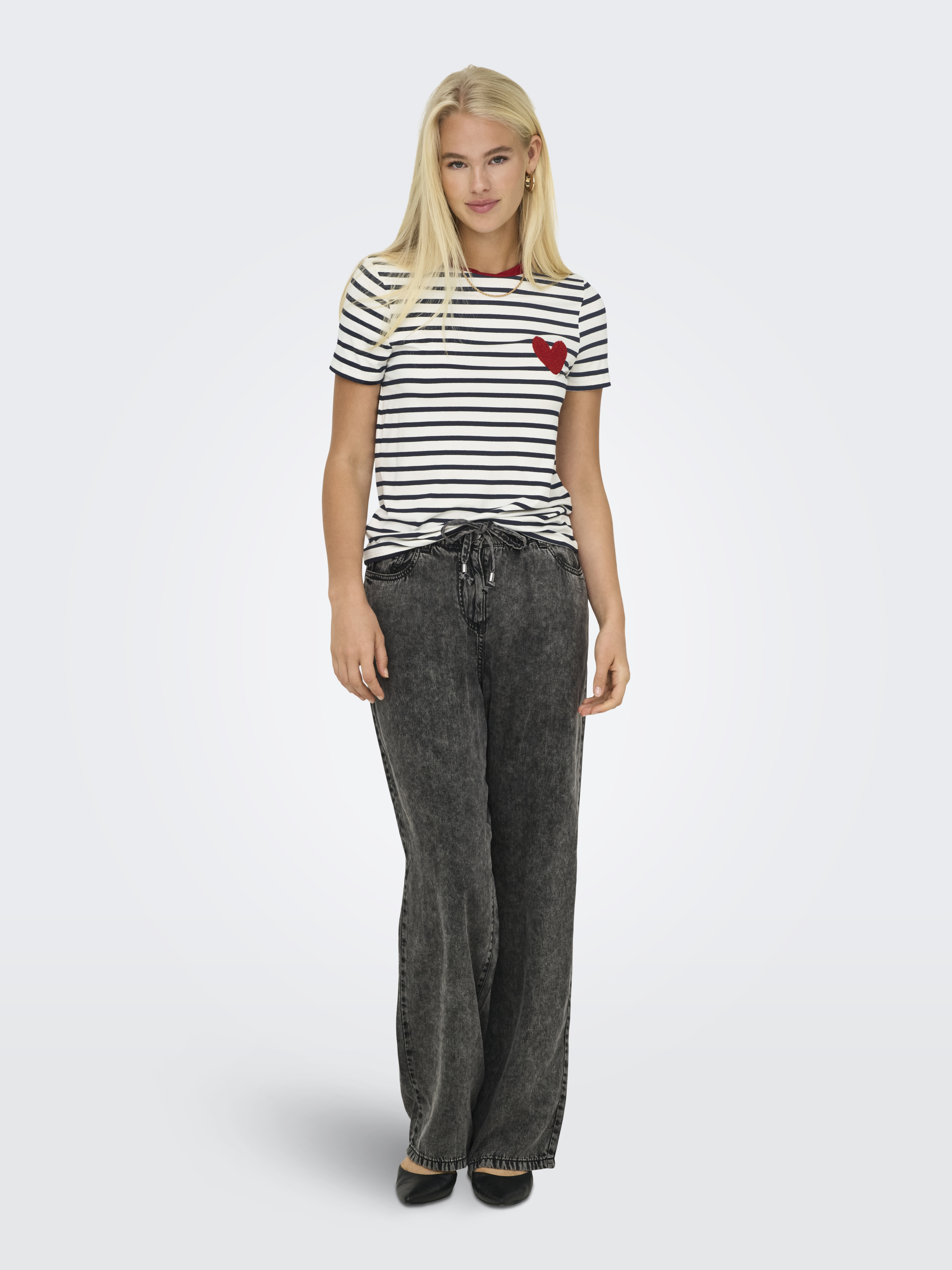 ONLY – OnlHeart gestreiftes T-Shirt mit Herz