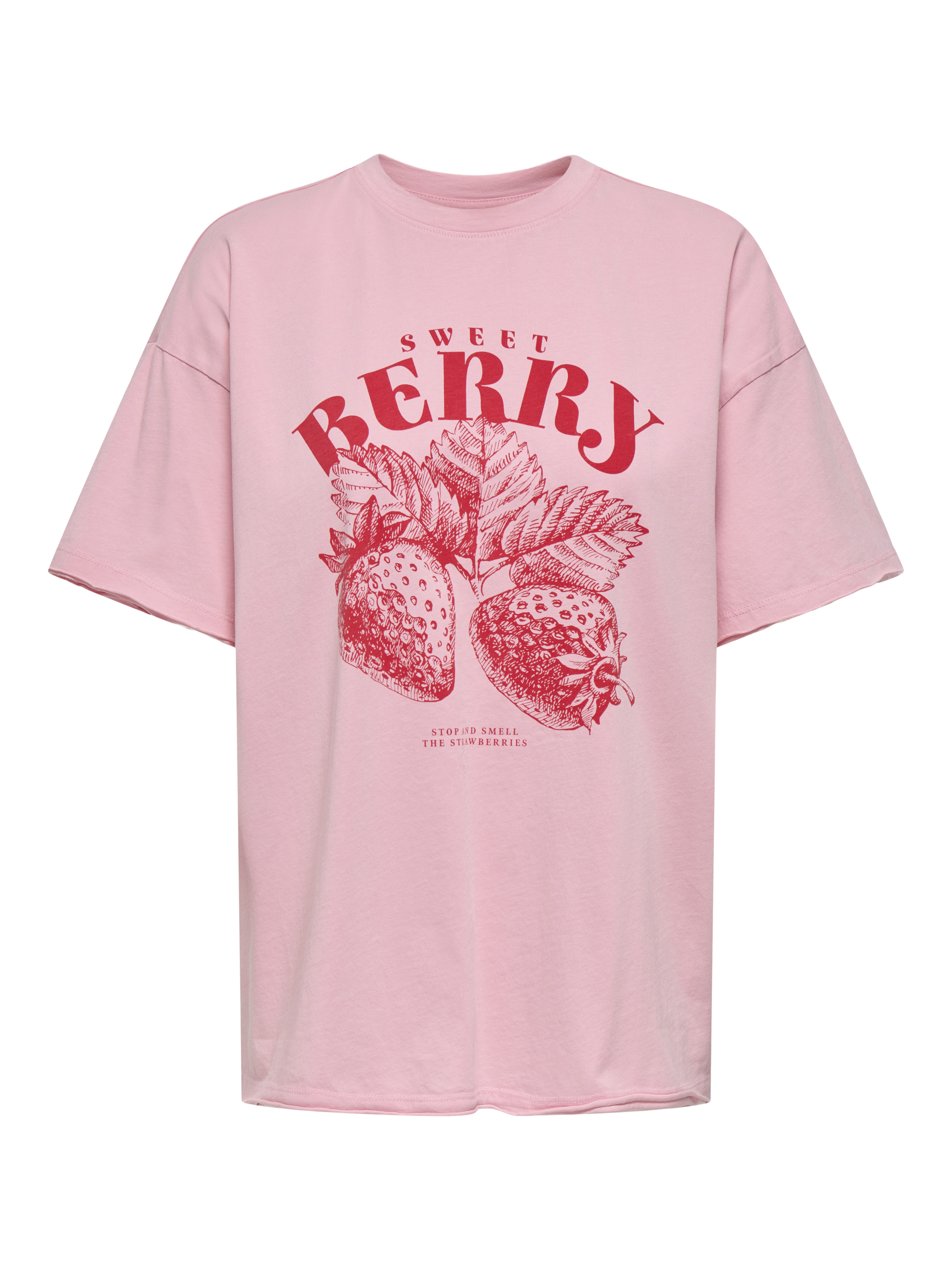 Home/Marken/ONLY/ONLY – OnlKinna T-Shirt mit Erdbeer-Print in Rosa