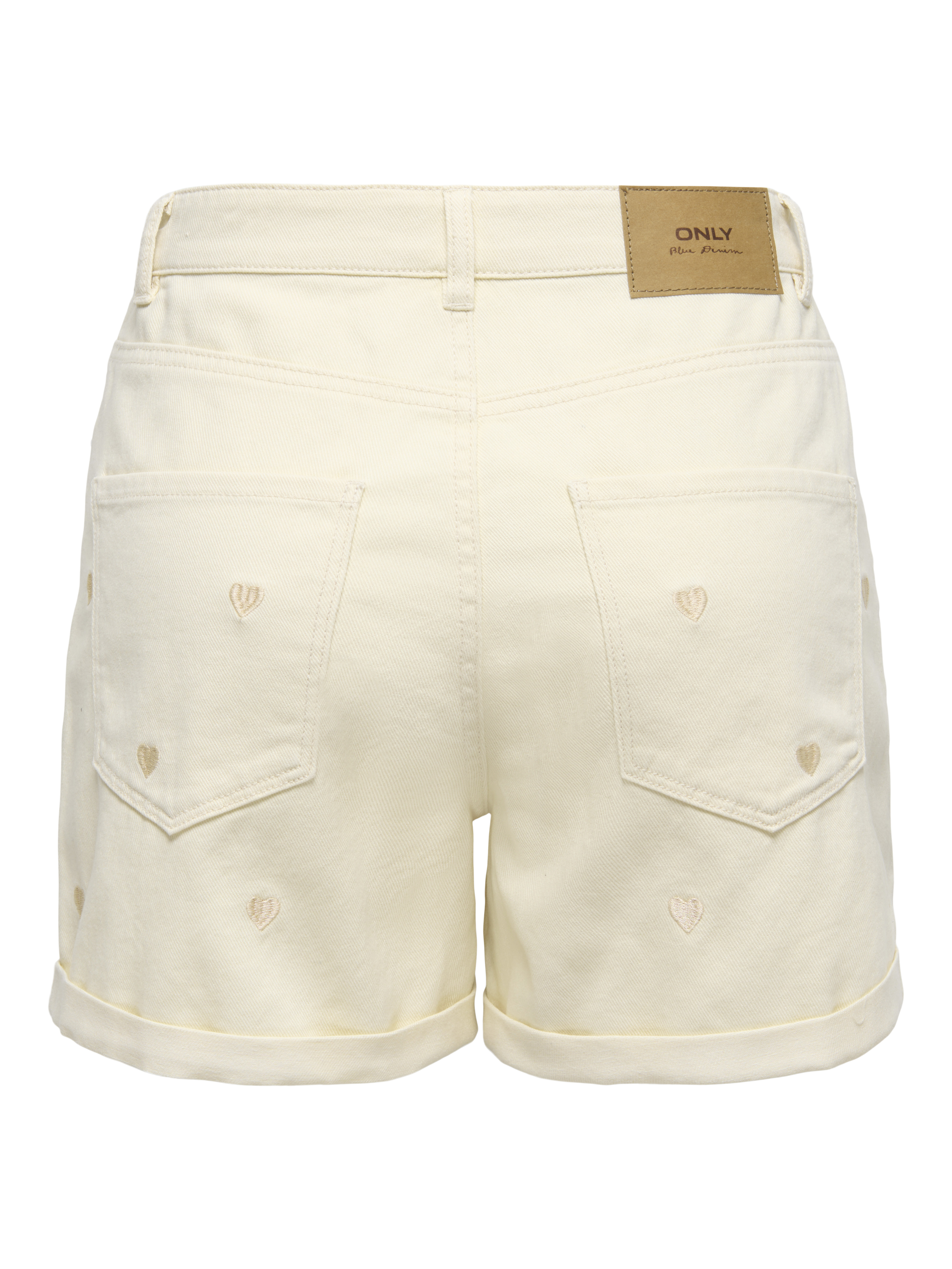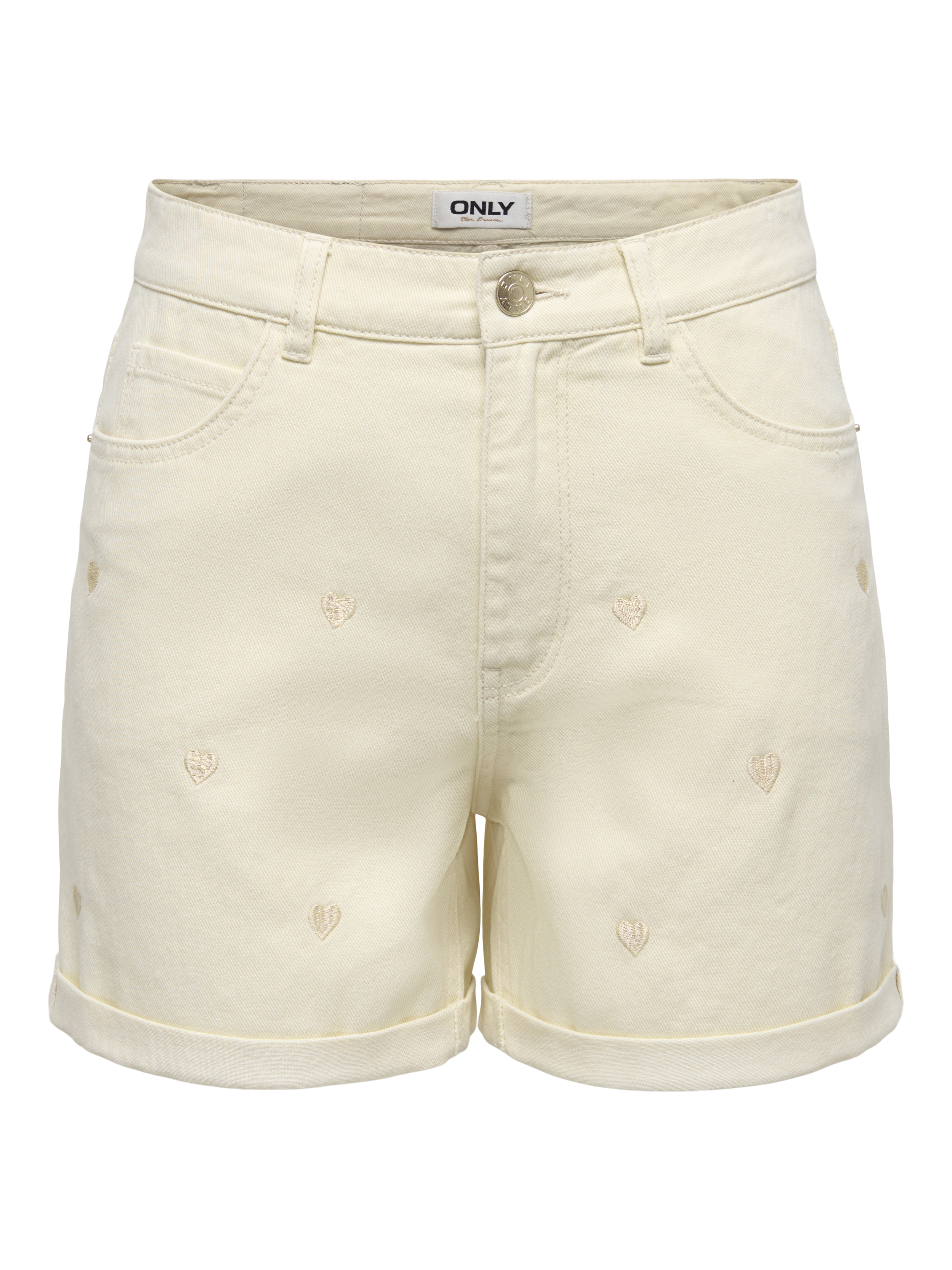 ONLY – OnlVega kurze Hose mit Herzstickerei in Ecru