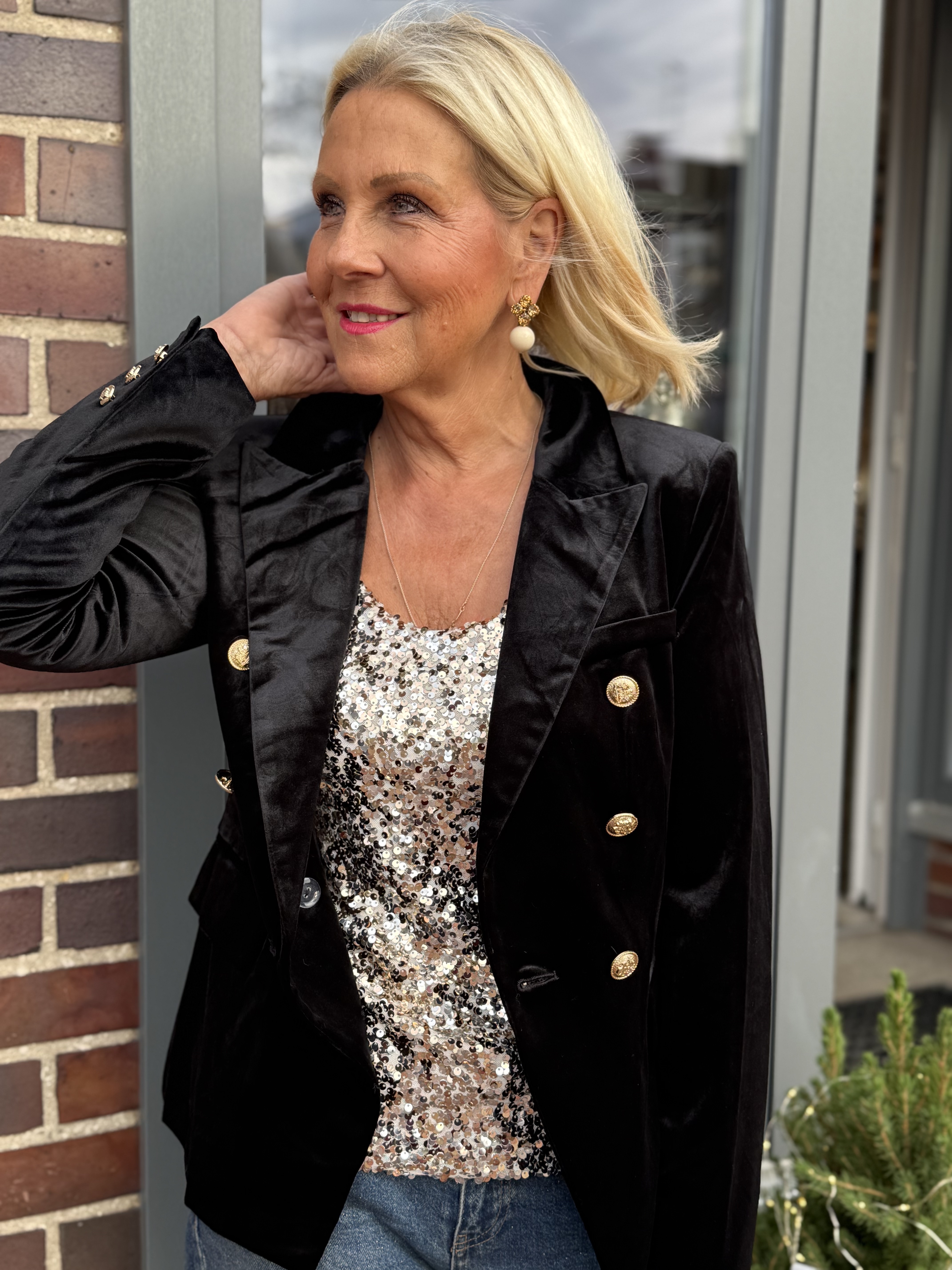 Samtblazer in Schwarz