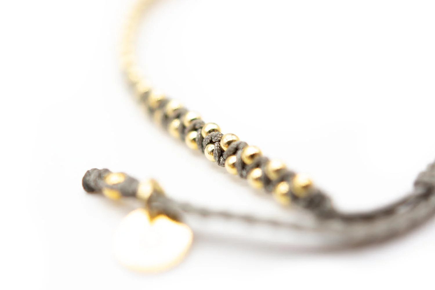Armband, Macremée geflochten, Sterlingsilber vergoldet mit Edelstein-Anhänger aus Labradorit
