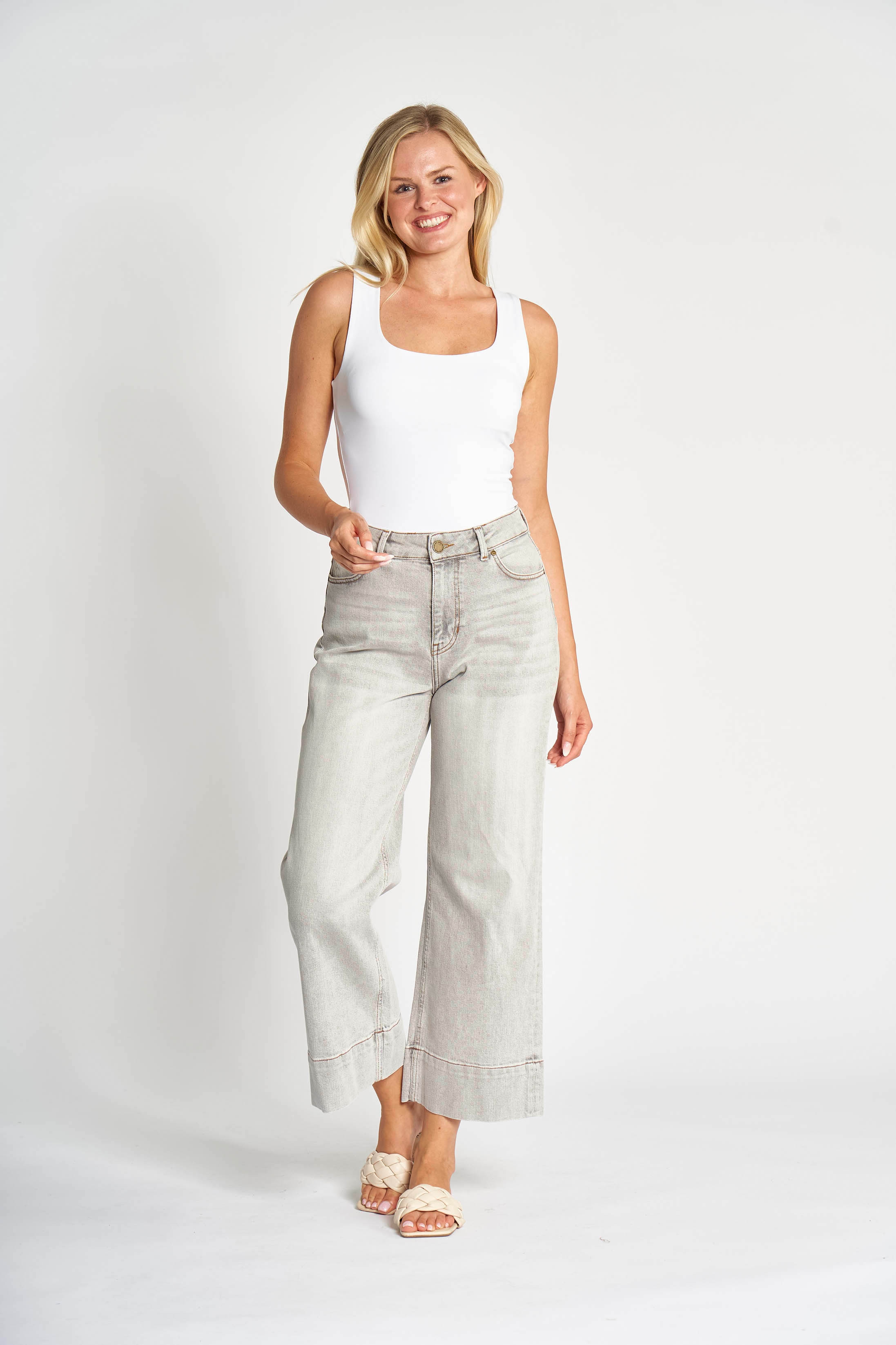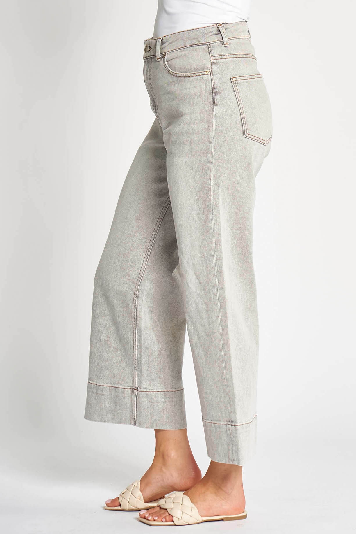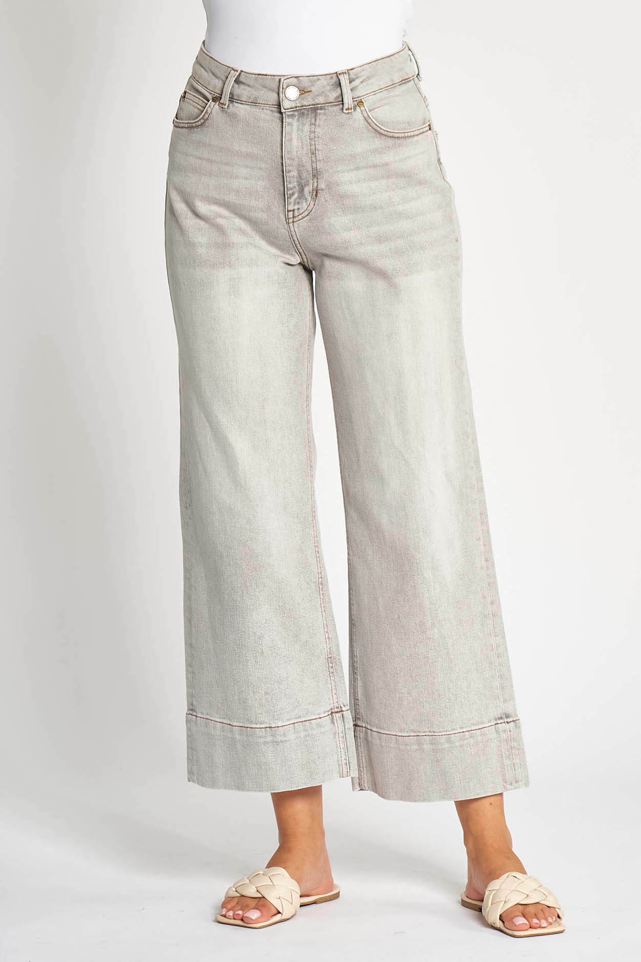 Zhrill – ZHilde Wideleg Jeans mit kurzem Bein in Grau